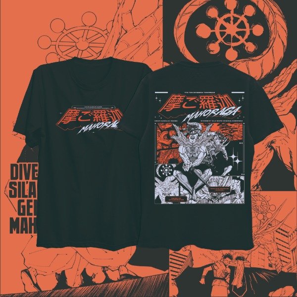 REMERA MAHORAGA JJK (BLANCO Y NEGRO)